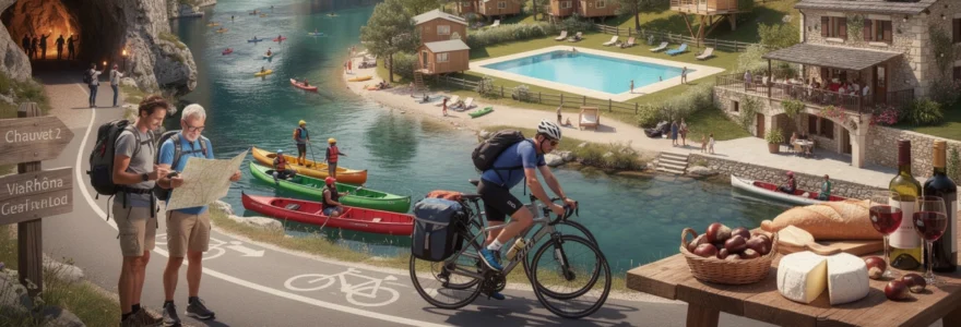 Les activités nautiques, en particulier la descente de l’Ardèche en canoë-kayak, constituent un produit phare de l’offre touristique. De nombreuses formules – de la balade familiale de quelques heures à la descente sportive sur deux jours avec bivouac – permettent de s’adapter à tous les publics. L’organisation de cette fréquentation repose sur une réglementation stricte (quotas de bateaux, périodes autorisées, zones de mise à l’eau) afin de préserver le milieu et de garantir la sécurité. Ce fragile équilibre entre attractivité et protection illustre l’un des grands enjeux du tourisme ardéchois : accueillir sans dénaturer.